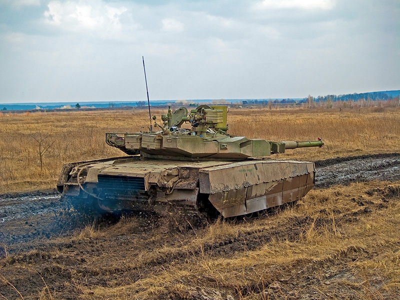El T-84 Oplot es el último desarrollo ucraniano en carros de combate modernos consistente en un derivado del T-80UD con motor diésel de construcción local: construido desde 1994, entró en servicio en las Fuerzas Armadas de Ucrania en 1999. Tiene un sistema de protección combinado que consiste en una armadura pasiva, protección dinámica incorporada y una serie de otros dispositivos de protección del tanque optimizados contra el daño del tanque moderno, lo que reduce significativamente la vulnerabilidad del tanque a todo tipo de armas antitanque.